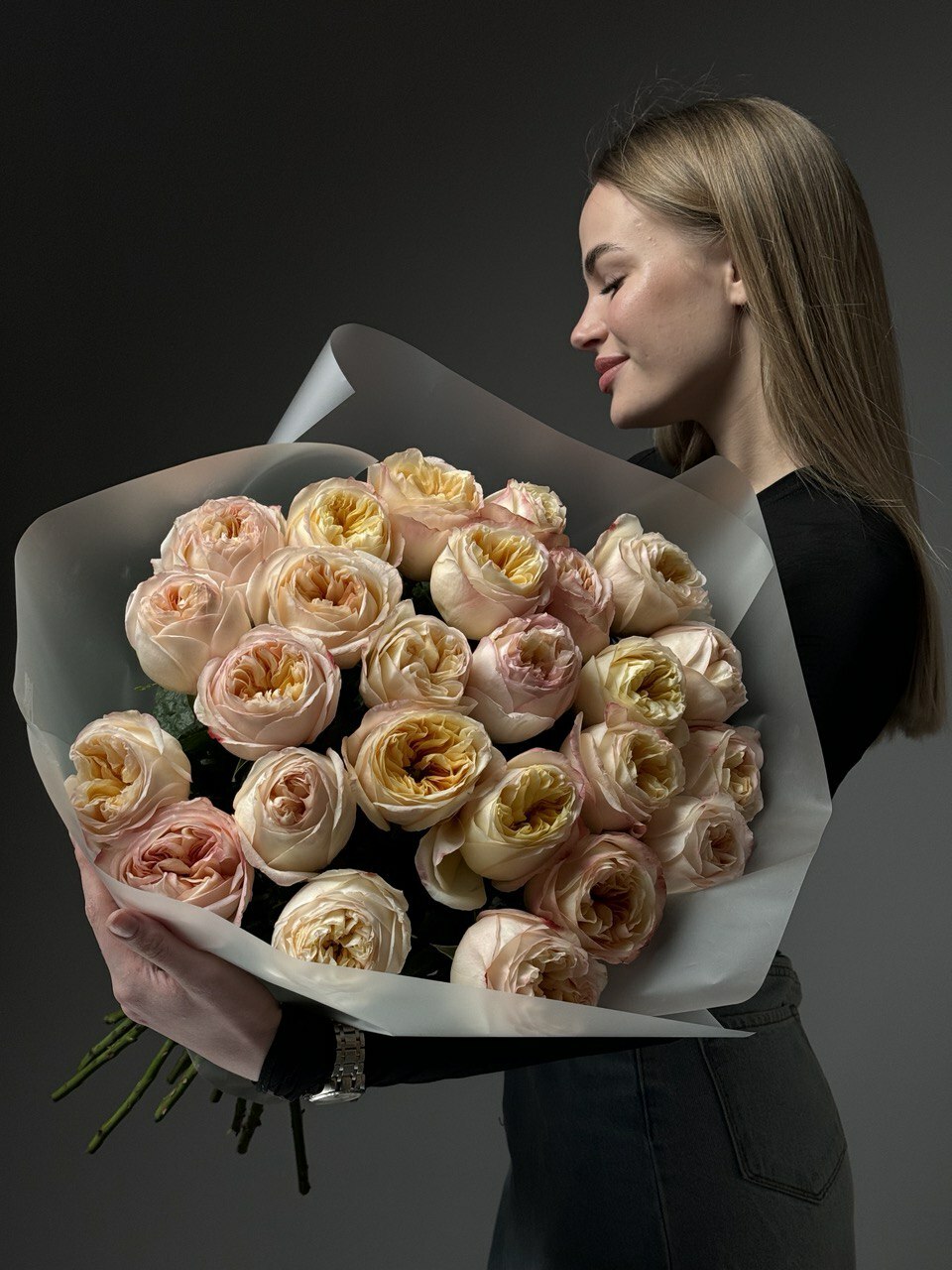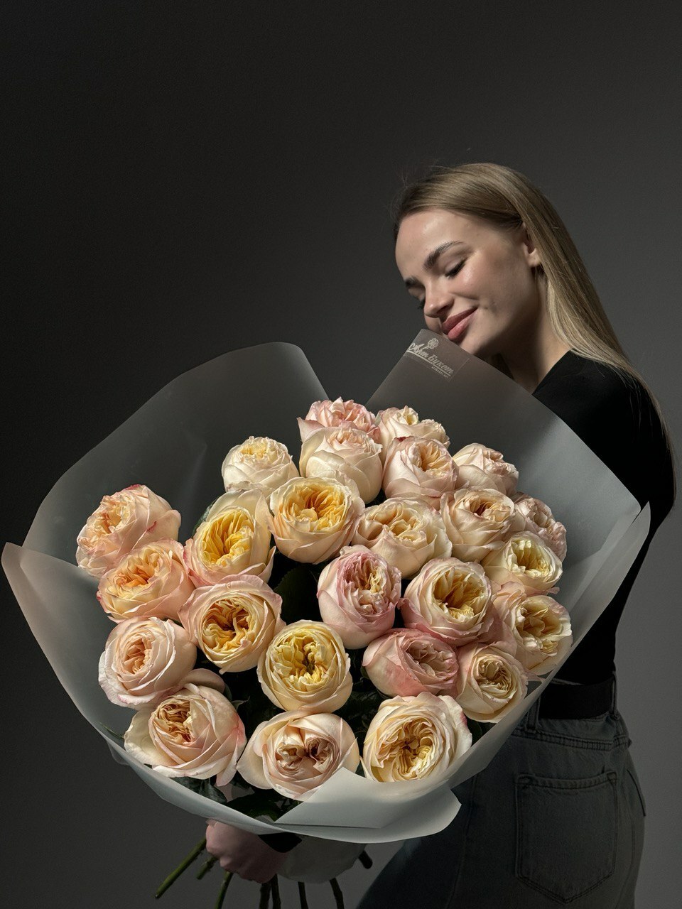 Готовый букет или композиция могут отличаться от фотографии на сайте, так как используется живой цветок, который имеет свою форму и размер в зависимости от сорта и раскрытия бутона!