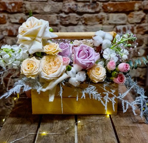 По вашему запросу мы можем прислать фотографию готовой цветочной композиции или букета.