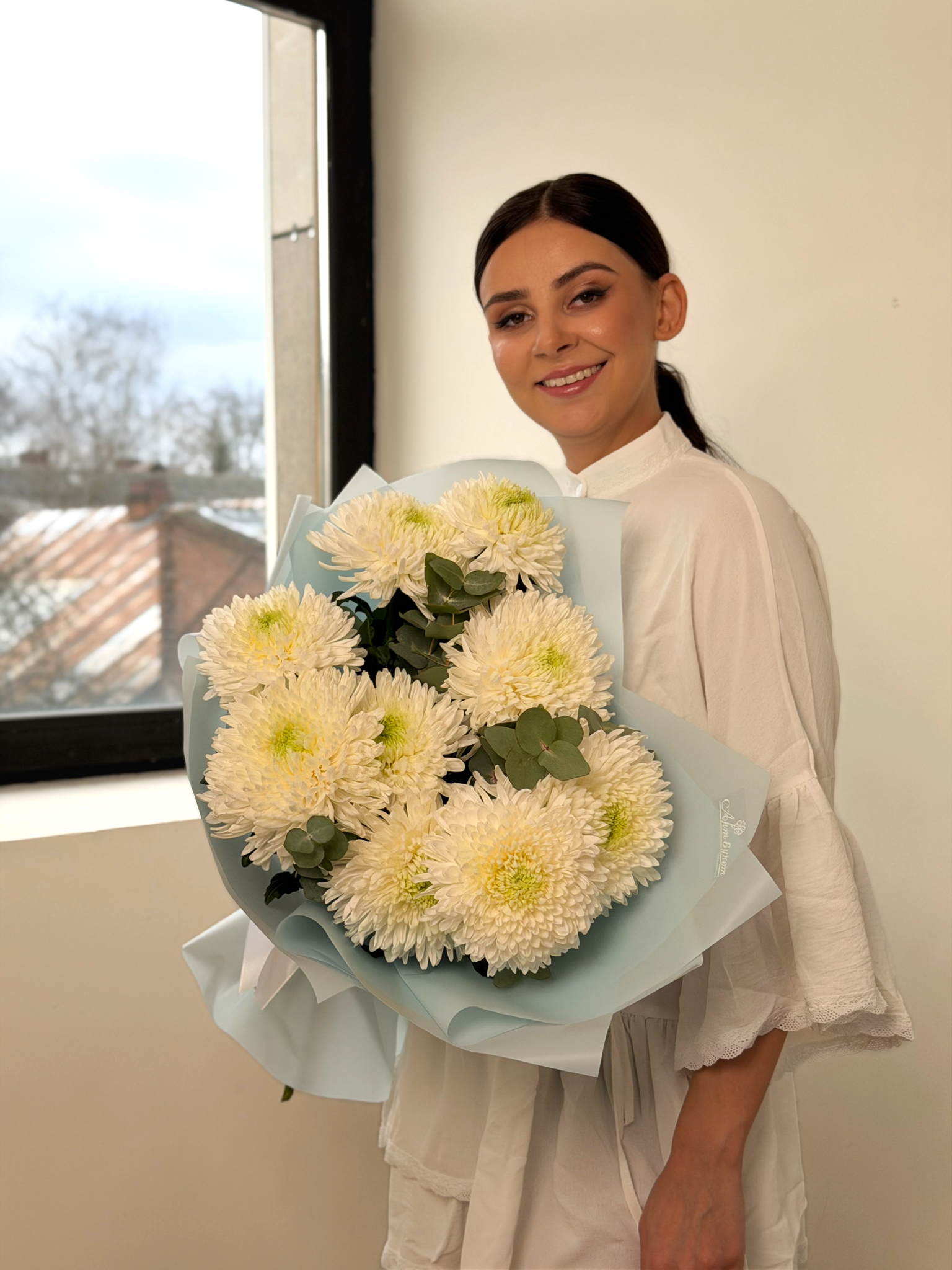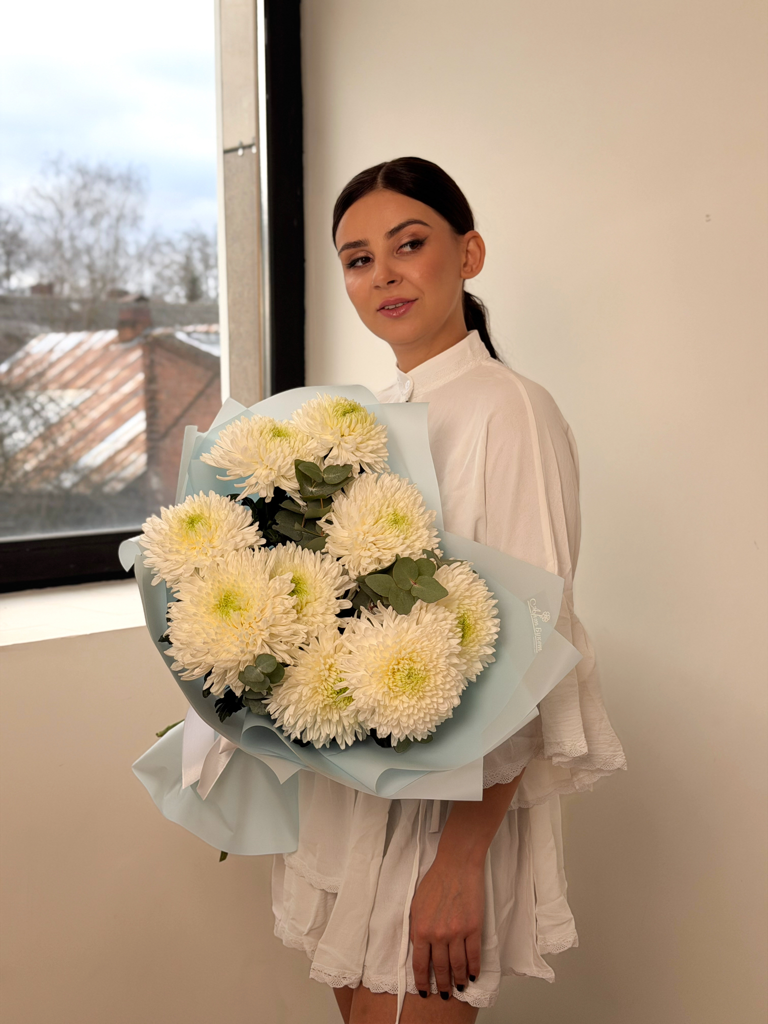 По вашему запросу мы можем прислать фотографию готовой цветочной композиции или букета.